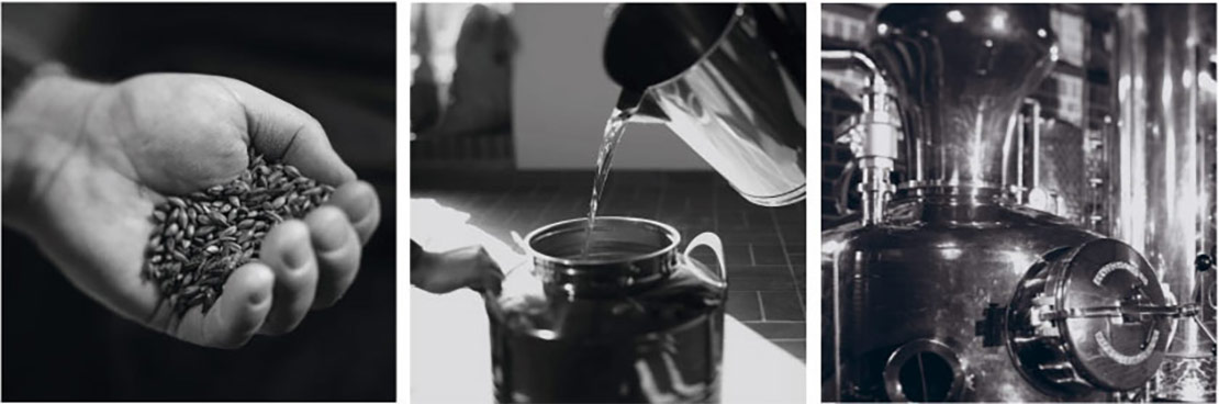 Cornelia Bohn wählt das beste Gerstenmalz für ihren Bio-Whisky aus. Dabei werden sowohl Röstmalze als auch Buchenholz-geräucherte Malzsorten verwendet. Das Malz wird erst unmittelbar vor dem Einmaischen geschrotet. So wird erreicht, dass die volle Qualität des Malzes ganz dem Destillat zugute kommt. Im Maischebottich trifft das geschrotete Malz auf das klare, saubere Wasser der Uckermark. In mehreren Stufen wird dann der Malzzucker herausgewaschen. In der Preussischen Whiskydestillerie wird der Schrot nach dem Einmaischen nicht herausgefiltert und bleibt so auch in Fermentation und Destillation erhalten.