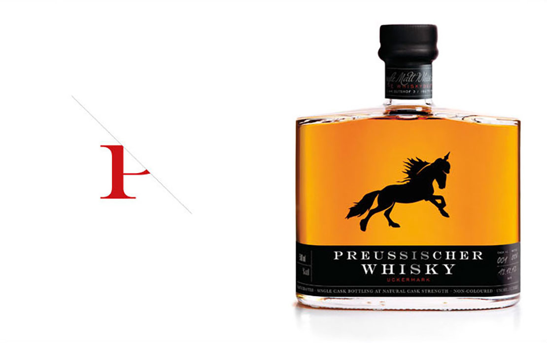 Alle Abfüllungen der Preussischen Whiskydestillerie sind sogenannte Einzelfassabfüllungen, das heißt, dass jede Charge nur aus einem einzigen Fass kommt. Abgefüllt wird in Fassstärke, ohne Zugabe von Farbstoff und ohne Kühlfilterung. So markant wie der Whisky ist auch die Flasche: Die Form setzt Maßstäbe im Design. Dominiert wird sie vom Logo der Preussischen Whiskydestillerie, dem Pferd mit Pickelhaube. Das schwarze Etikett ist schlicht, elegant und puristisch und trägt doch alle relevanten Informationen wie Jahrgang, Fassnummer und Alkoholgehalt. Jede Flasche ist außerdem nummeriert und von Cornelia Bohn handsigniert.